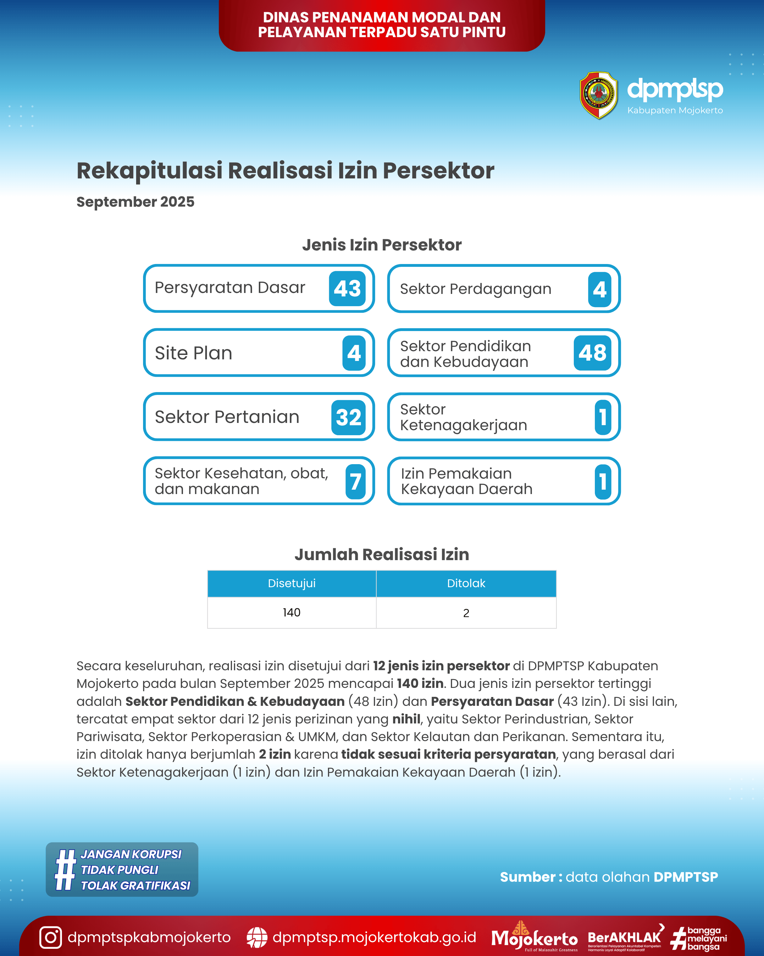 DPMPTSP Kabupaten Mojokerto Setujui 140 Izin pada September 2025, Sektor Pendidikan dan Kebudayaan M.....